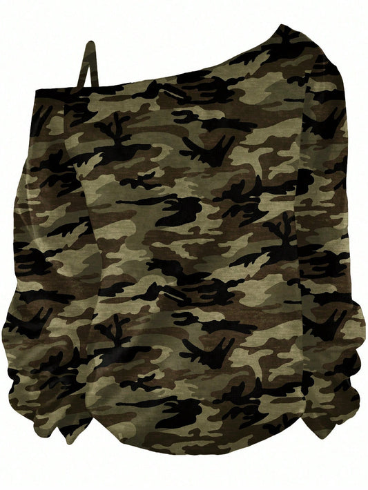 تي شيرت أنثوي طويل الأكمام ذو كتف واحد