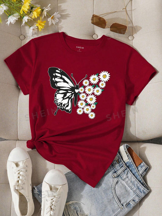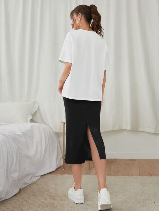 تي شيرت بطباعة أحرف و تنورة بحافة مشقوق