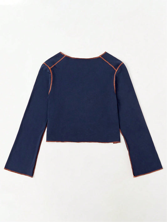 تي شيرت بعنق عالي مدور منسوج مضفور