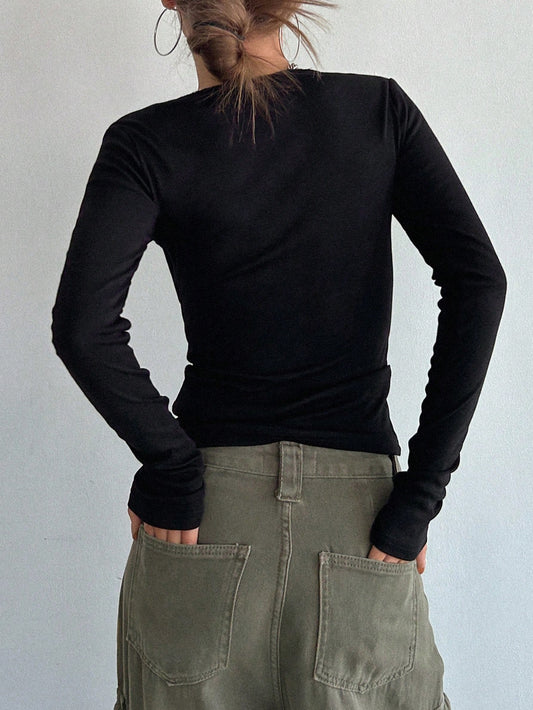 تي شيرت بطباعة نقاط البولكا قص مجوف
