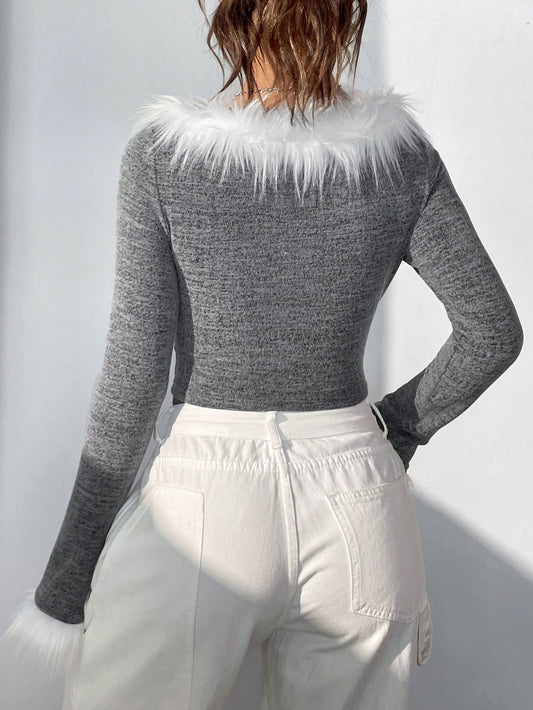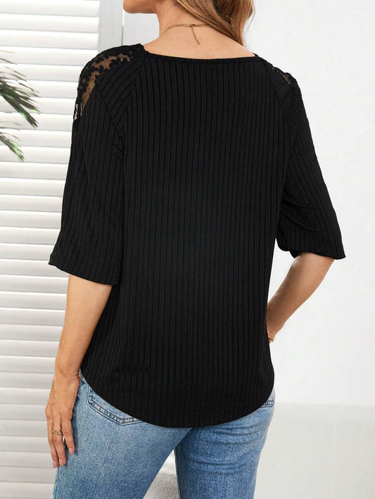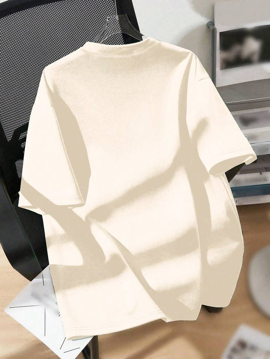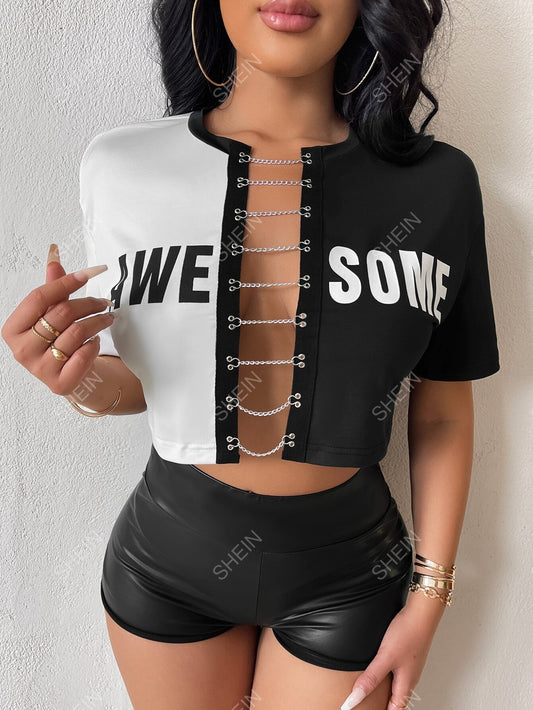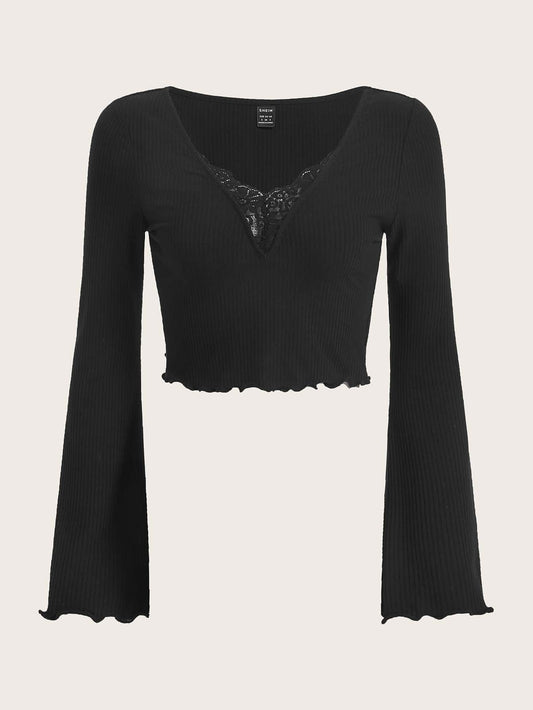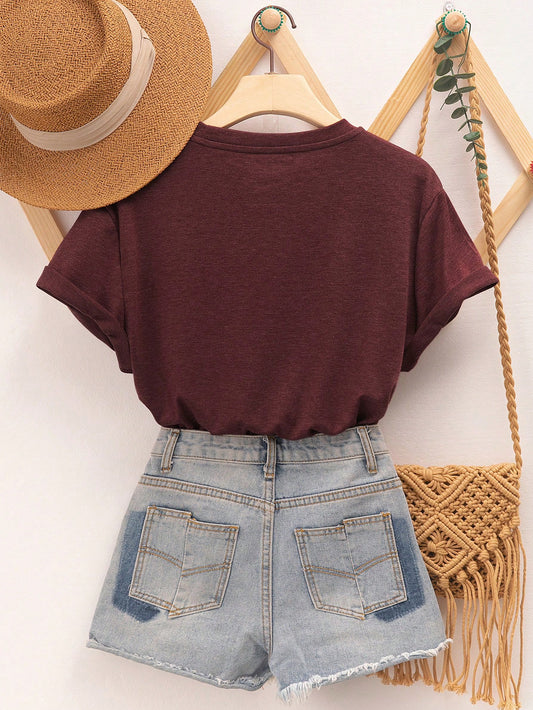 تي شيرت قصير موحدة اللون ياقة عميقة