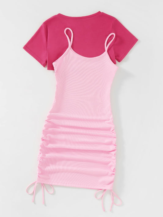 تي شيرت قصير للغاية مع رباط فستان كامي