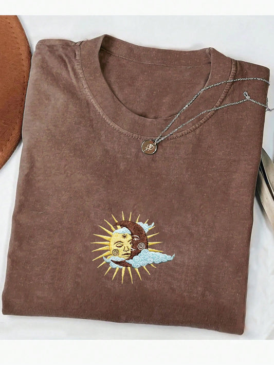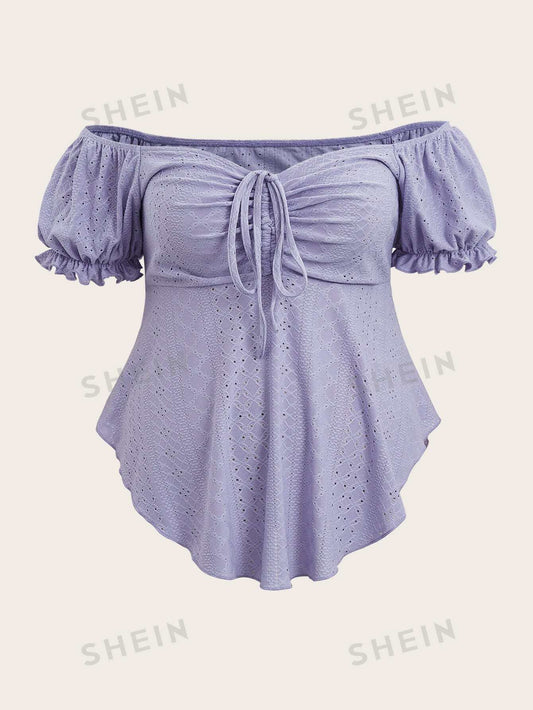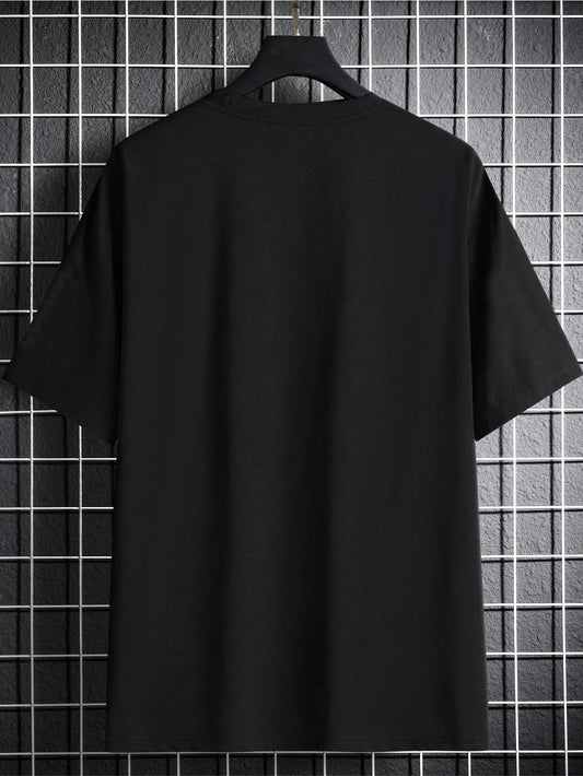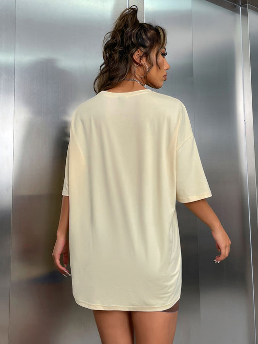تي شيرت منخفض الاكتاف بجرافيك عبارة وشخصية
