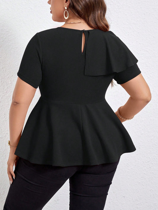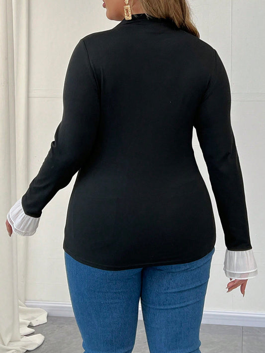 تي شيرت مقلم بكشكش زخارف مقاس كبير