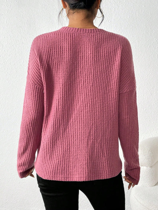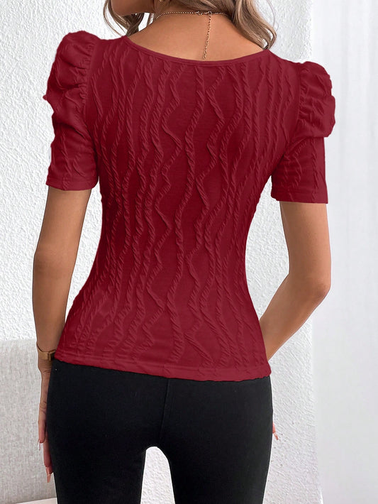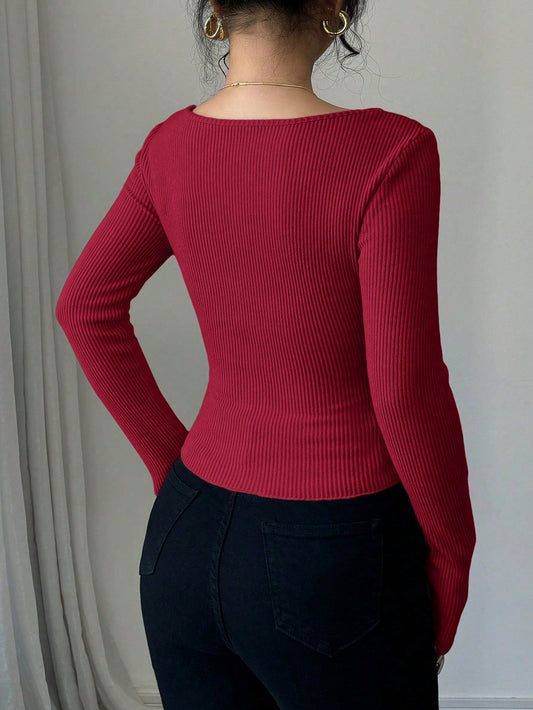 تي شيرت موحدة اللون ثنية ياقة غير متماثل