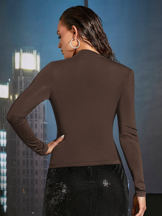 تي شيرت من الفليس ذو قصة ضيقة، أكمام طويلة