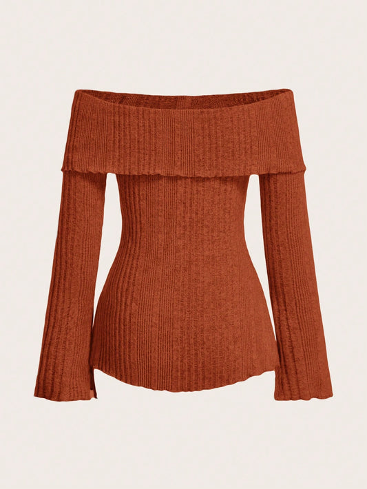 تي شيرت منخفض الاكتاف ياقة مفتوح جيب مرقع