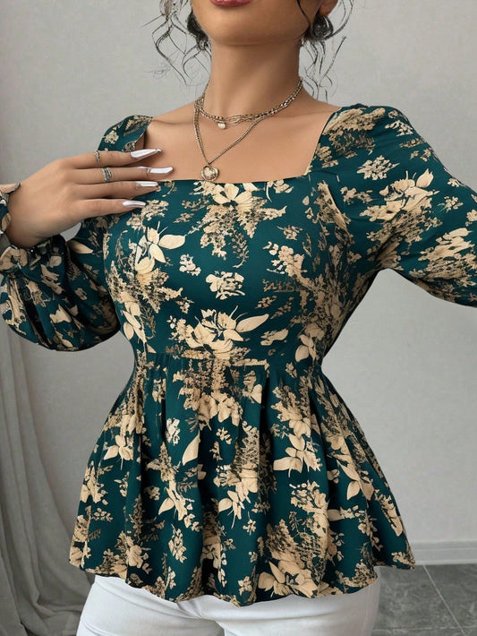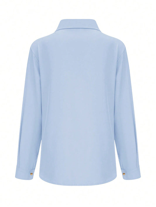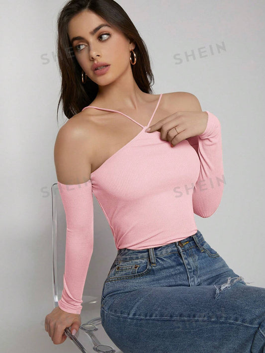 تي شيرت موحدة اللون ياقة غير متماثل تجاعيد