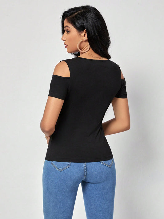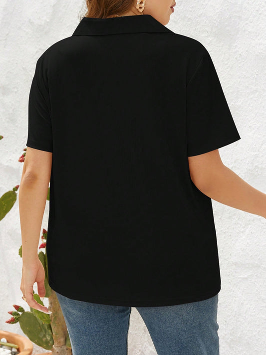تي شيرت نسائي أكمام قصيرة بياقة مائلة