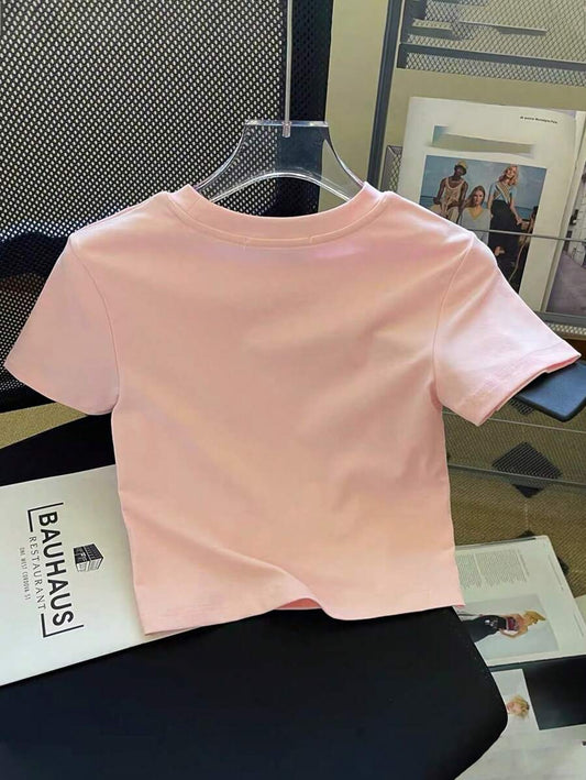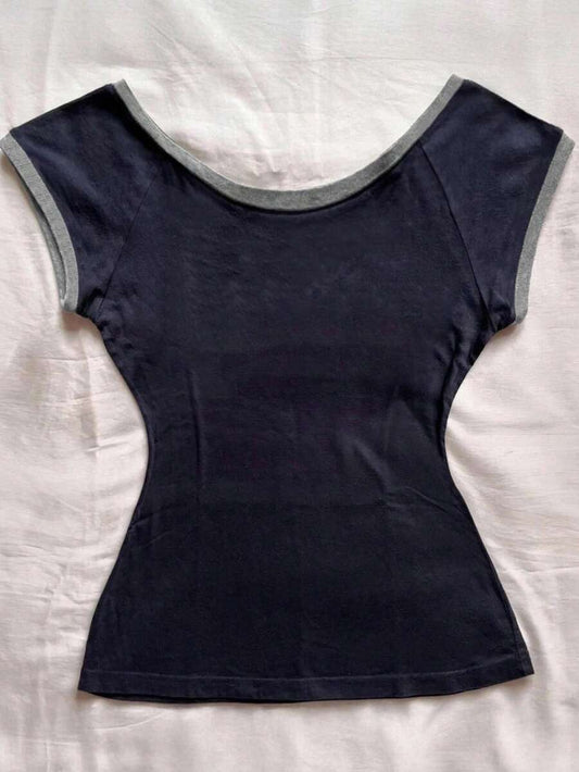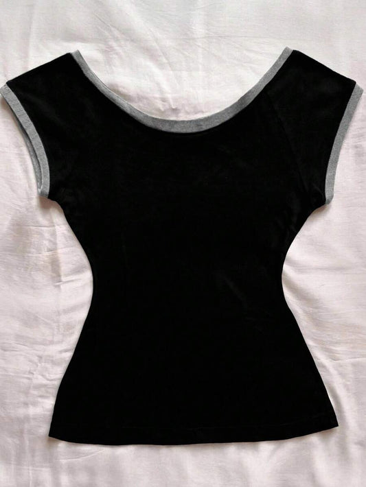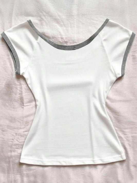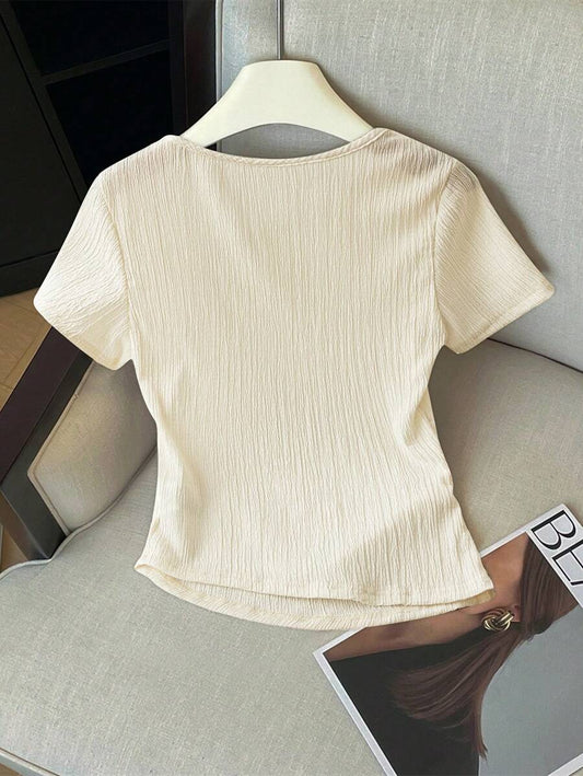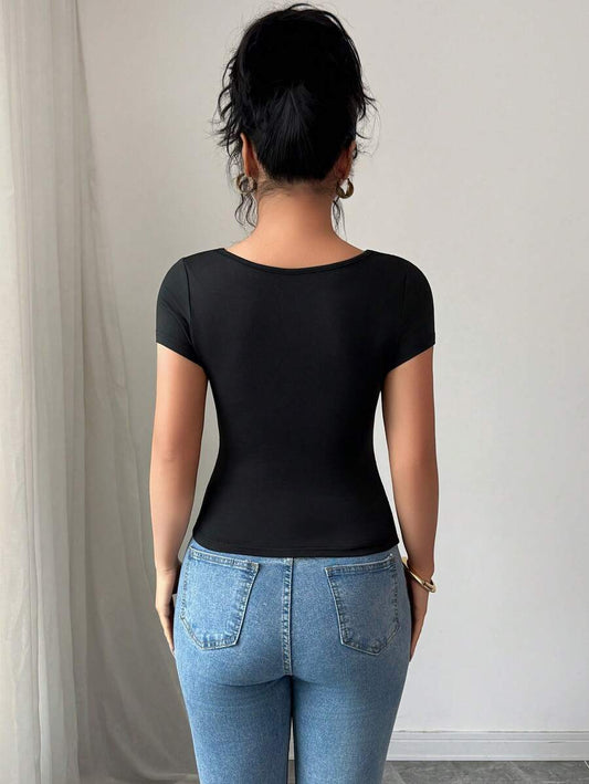 تي شيرت نحيل قصير فتحة نصف بسستة