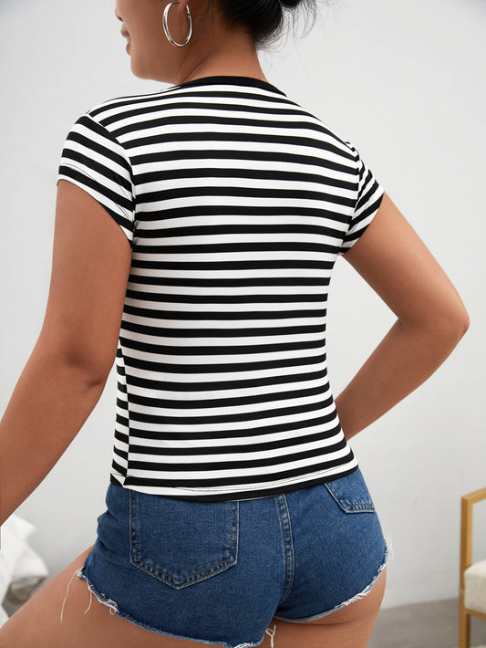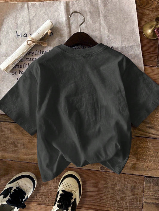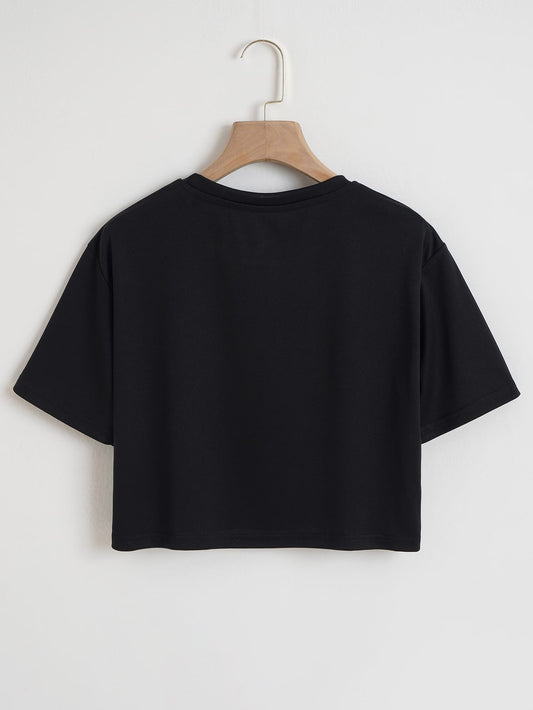 تي شيرت نسائي قصير مطبوع بالرسومات والحروف