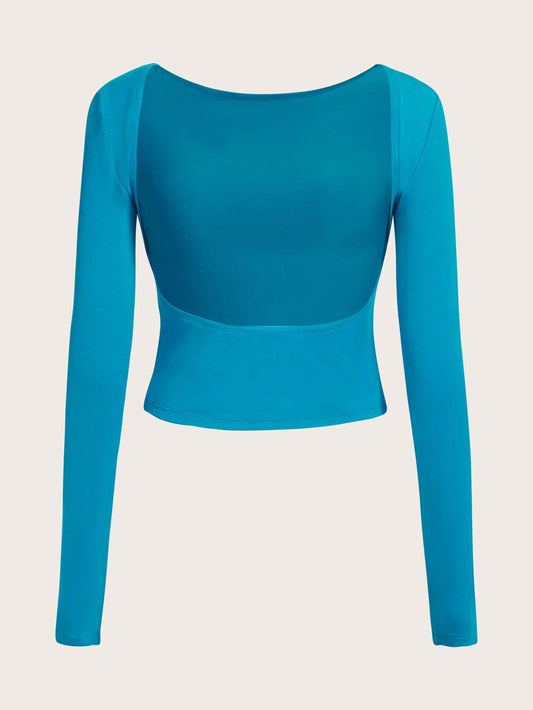 تي شيرت نسائي مجوف بلون خالص