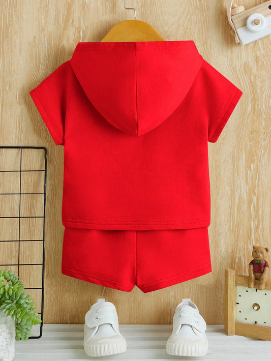 تي شيرت وشورت تفاصيل مرقع بعبارة قبعة للاولاد الاطفال