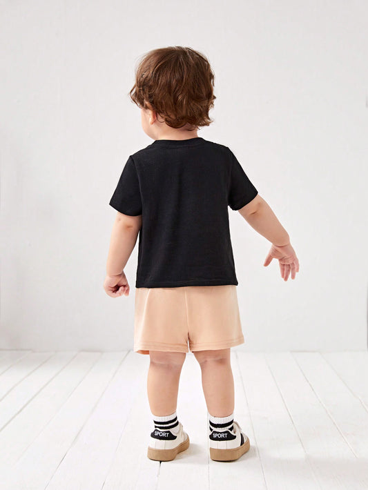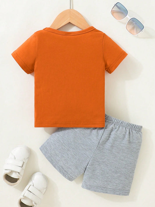 تي شيرت وشورت بطباعة أحرف للاولاد الاطفال