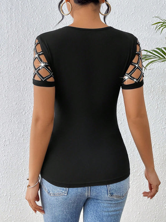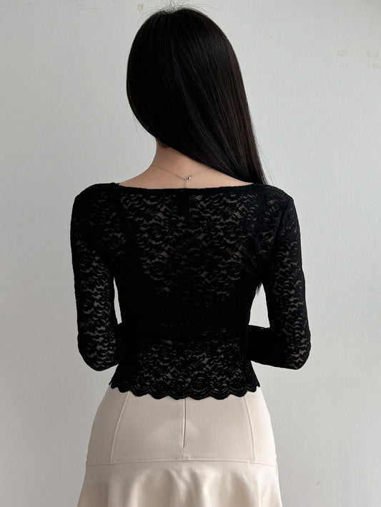 تي شيرت نسائية ذات أكمام طويلة بالدانتيل