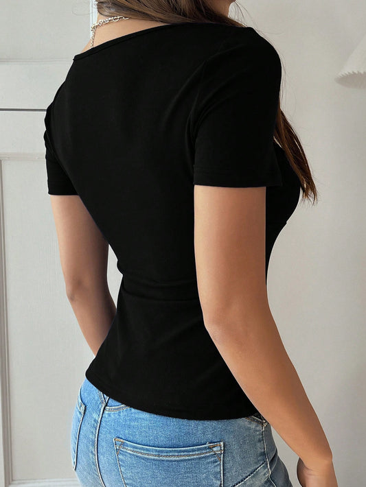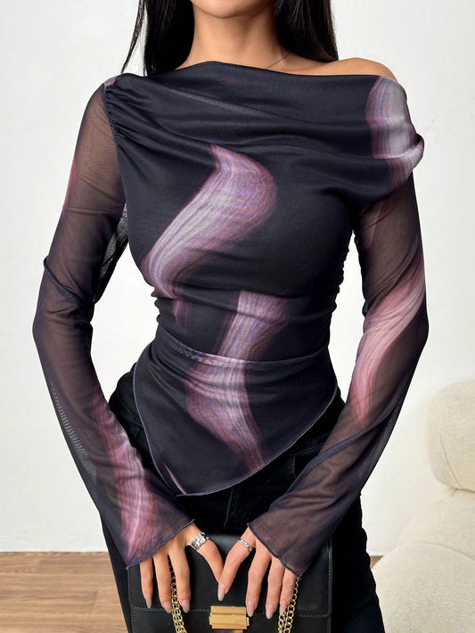 تي شيرت نمط جلد الفهد ملائم وباكمام رداء