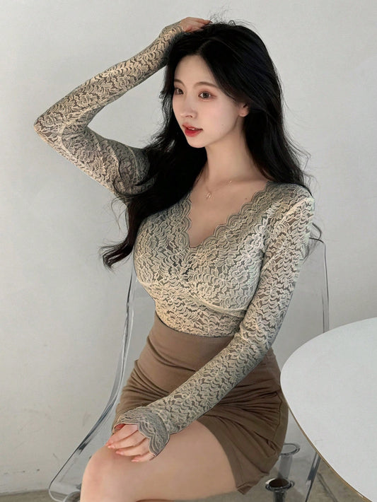 تيشيرت نسائي مطرز بالدانتيل شفاف