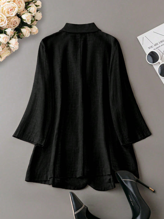 جاكيت بياقة مطوي مسنن زر احادي مقاس كبير