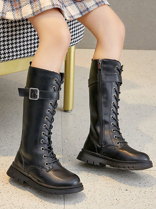 جزمة عسكرية بديكور مشبك رباط امامي سحاب جانبي منصة