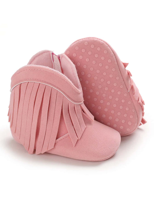 جزمة برقبة طويلة مزخرف بقوس زغبي للاطفال