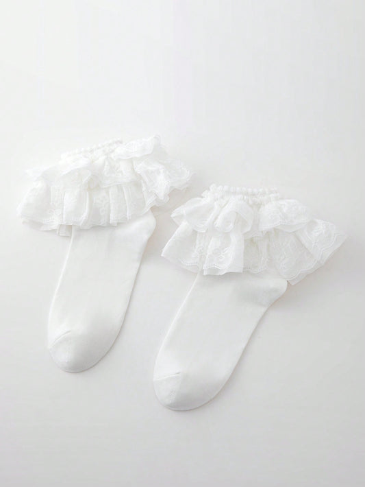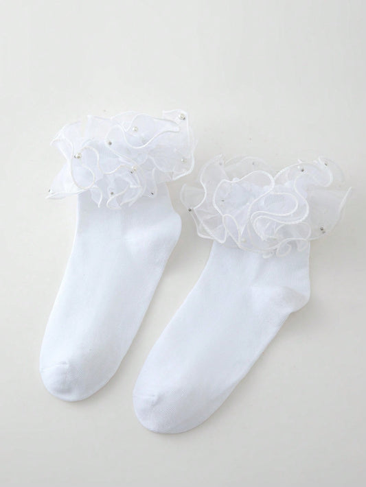 جوارب شبكية مزخرف بقوس للبنات الصغار