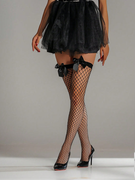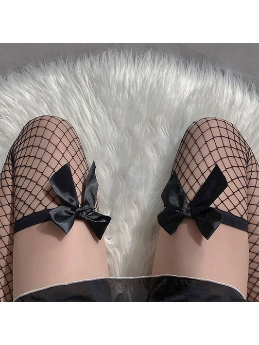 جوارب طويلة للنساء مزينة بالقوس الجذاب