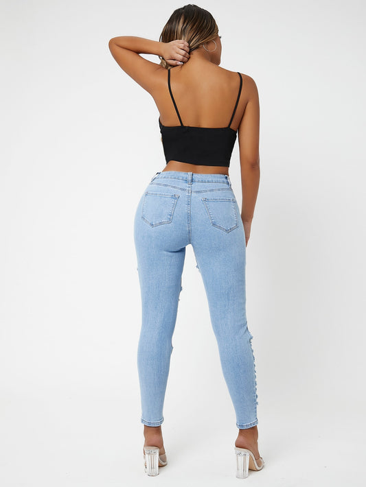 جينز نحيل ممزق خصر عالي