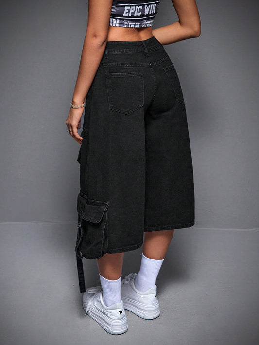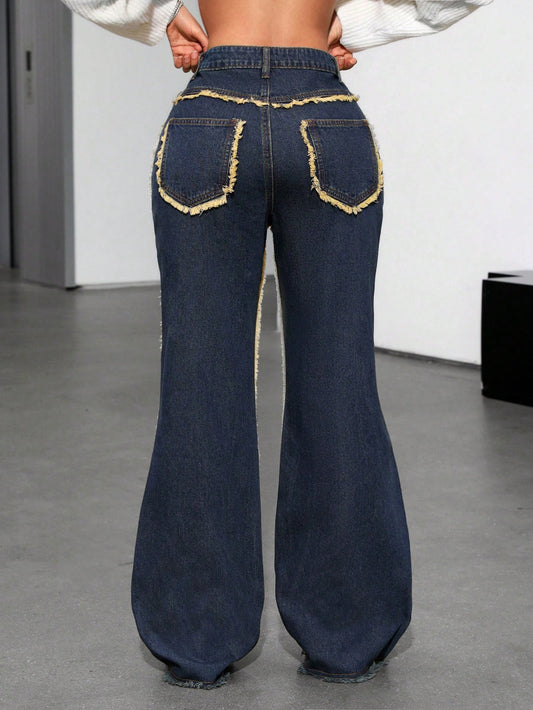 جينز متسع ذو جيوب مائلة عصري وكاجوال