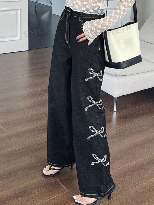 جينز واسع الساقين بطبعة القوس