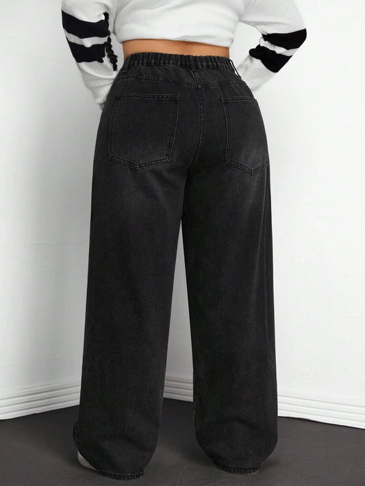 جينز واسع الحجم بلونٍ صلب ومتسع