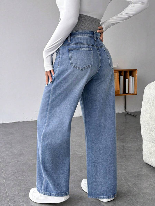 جينز نسائي واسع الساق مريح