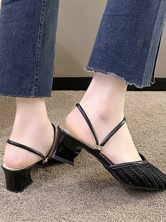 حذء كعب عالي بتفاصيل منسوج باصابع قدم مدبب