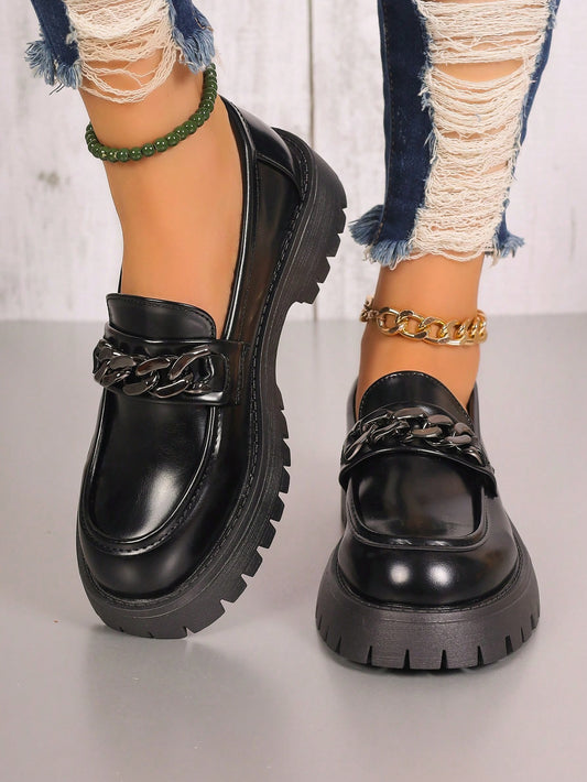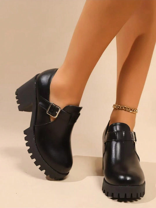حذاء أكسفورد أسود بأسفل سميك للنساء
