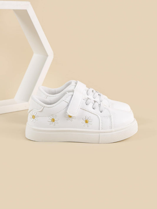 حذاء رياضي بناتي بتطريزات زهور, لون أبيض