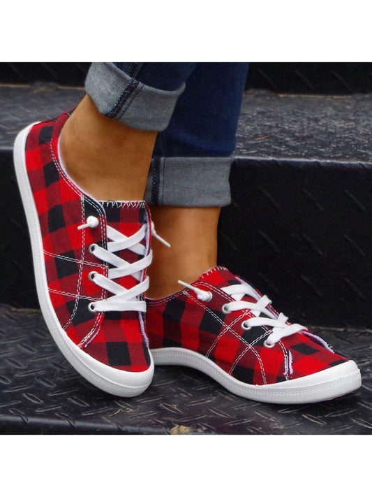 حذاء نسائي أنيق بالطبعة المربعة الحمراء