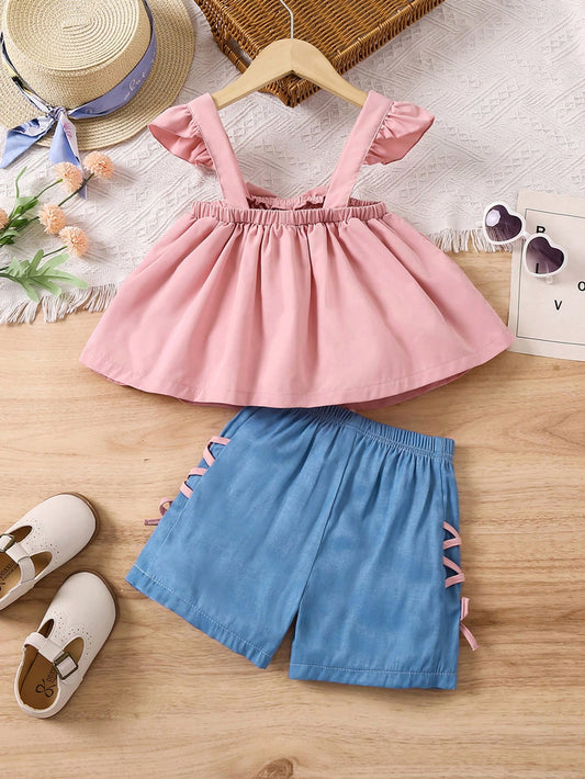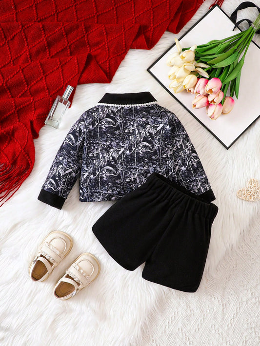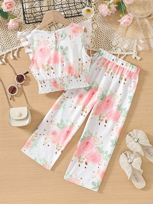 زي مطبوع بطبعات الأزهار 2قطعة للفتيات الصغيرات