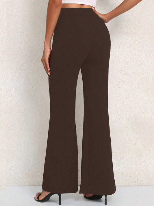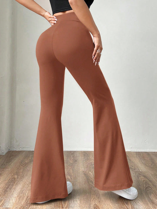 سراويل ضيقة مخملية بني موكا مفرغة للنساء