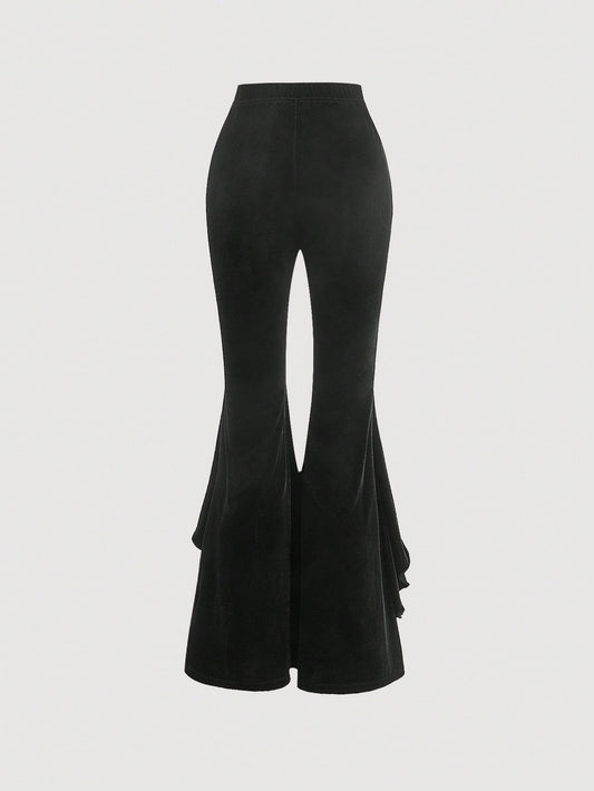 سروال المظلة موحدة اللون جيب قلاب رباط خصر