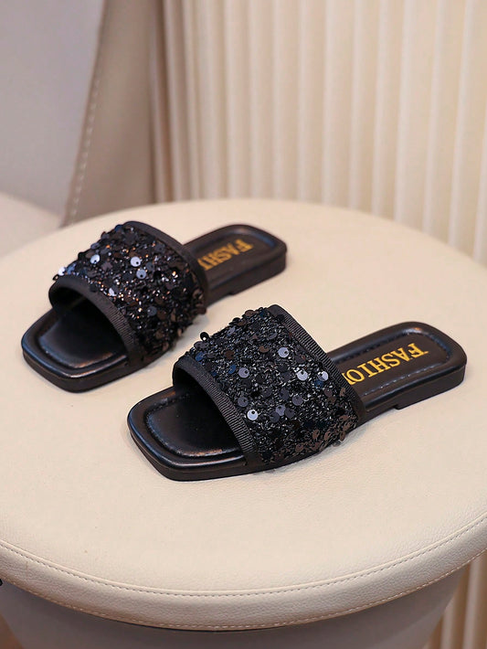 صنادل أميرة مرصعة بالراين لأزياء البنات