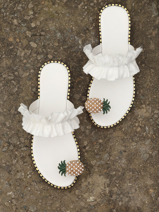 صنادل بأشرطة رفيعة أناناس ديكور مقلم بكشكش
