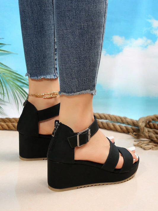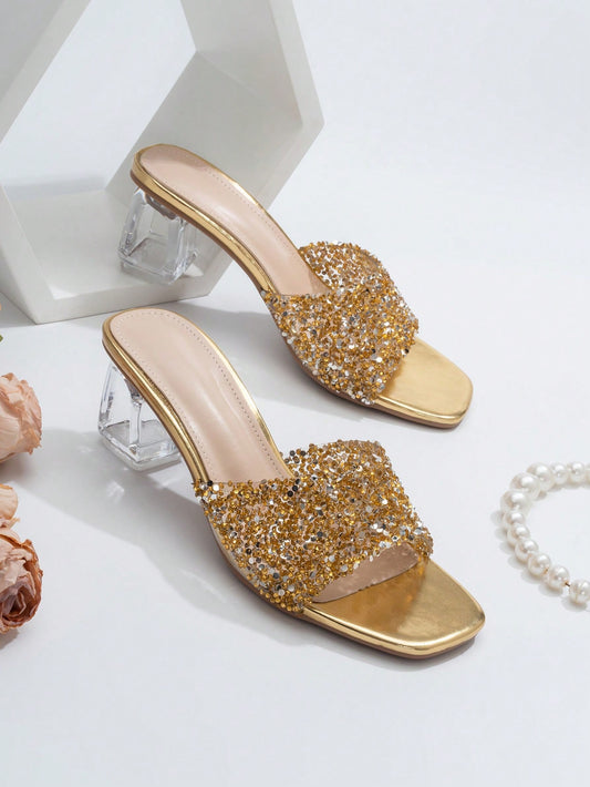 صنادل بكعب رفيع ورأس مستدير للنساء
