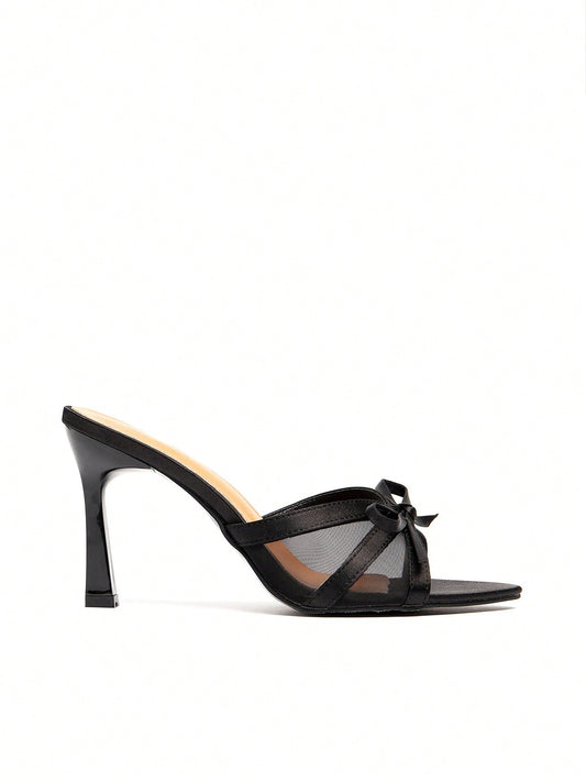صنادل ذات كعب عالي أنيقة مزينة بفيونكة