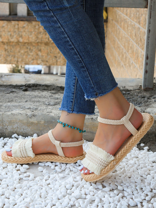 صنادل مسطح أنيق برباط للنساء وصنادل