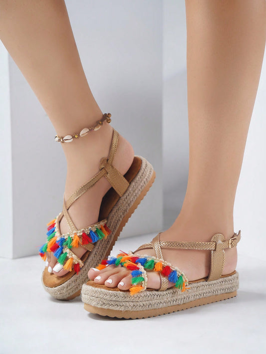 صنادل نسائية بإبزيم بتصميم ملون بشرابة