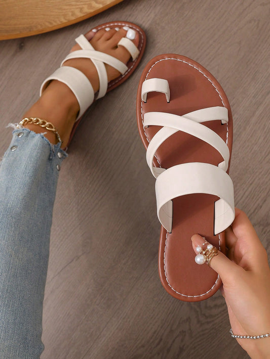 صندال مسطح كاجوال كوري منفتح الأصابع للصيف