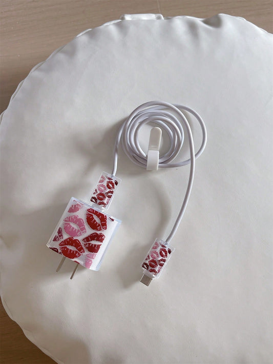طقم حالة هاتف بنمط الشفاه الحمراء
