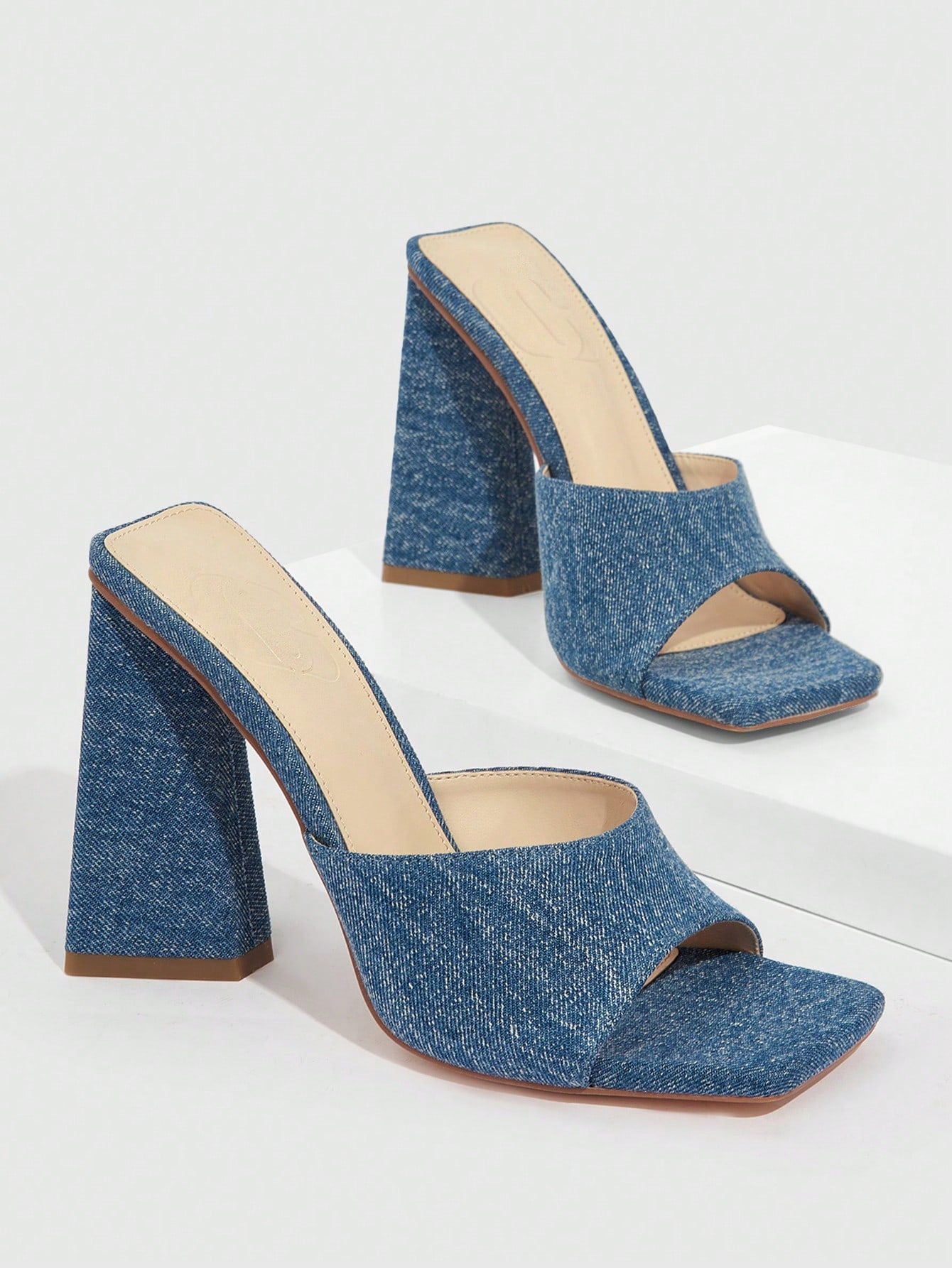 أحذية صنّادل الحافة السميكة الجينز الأزرق