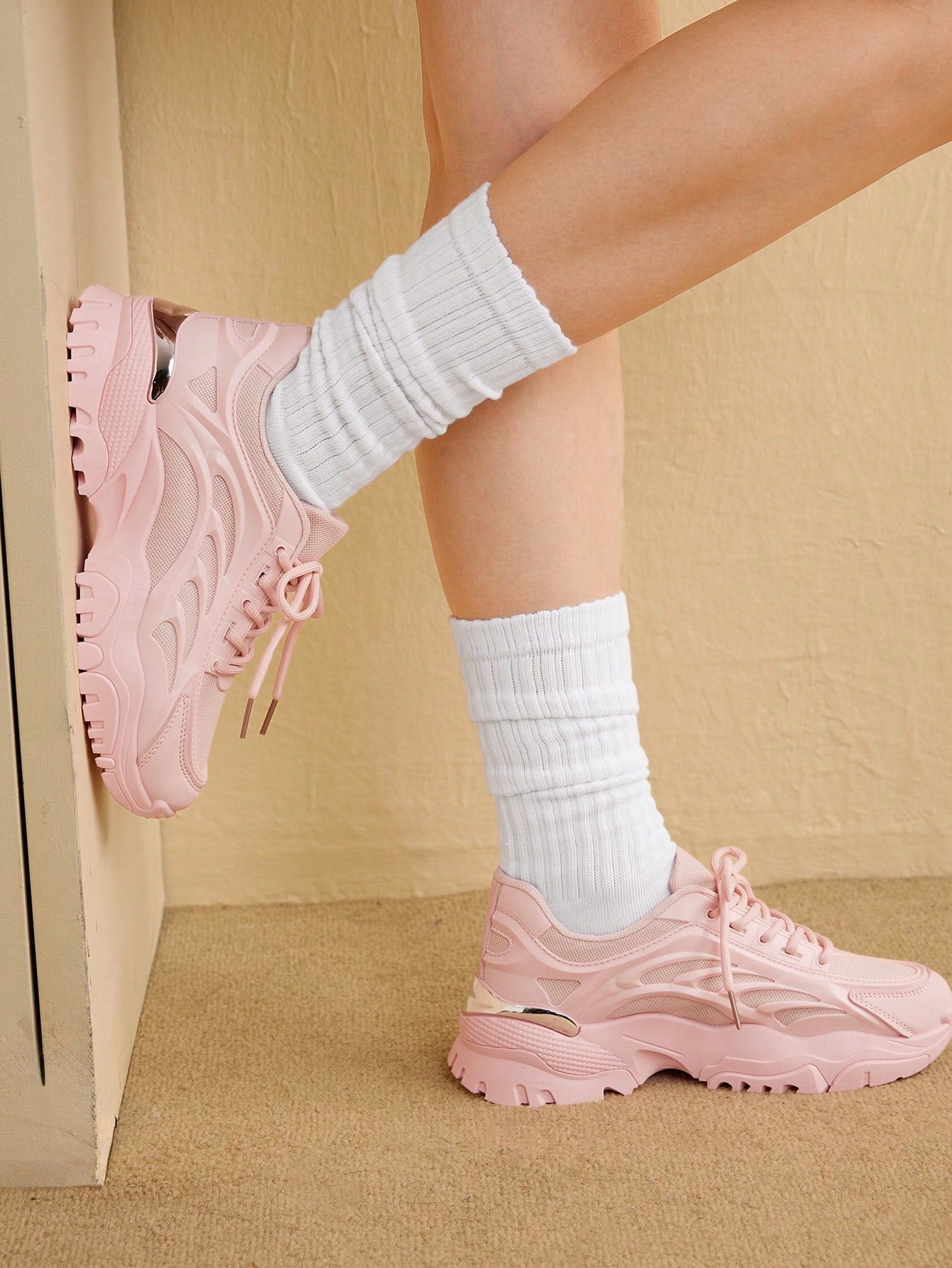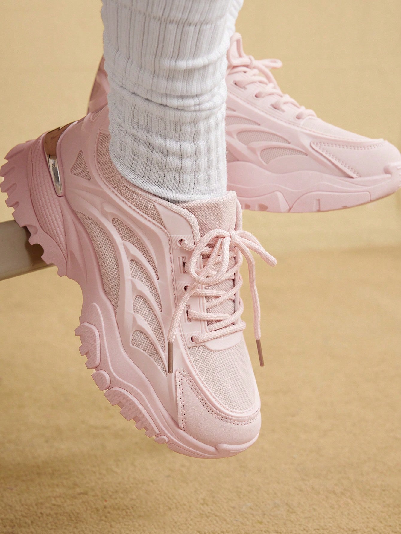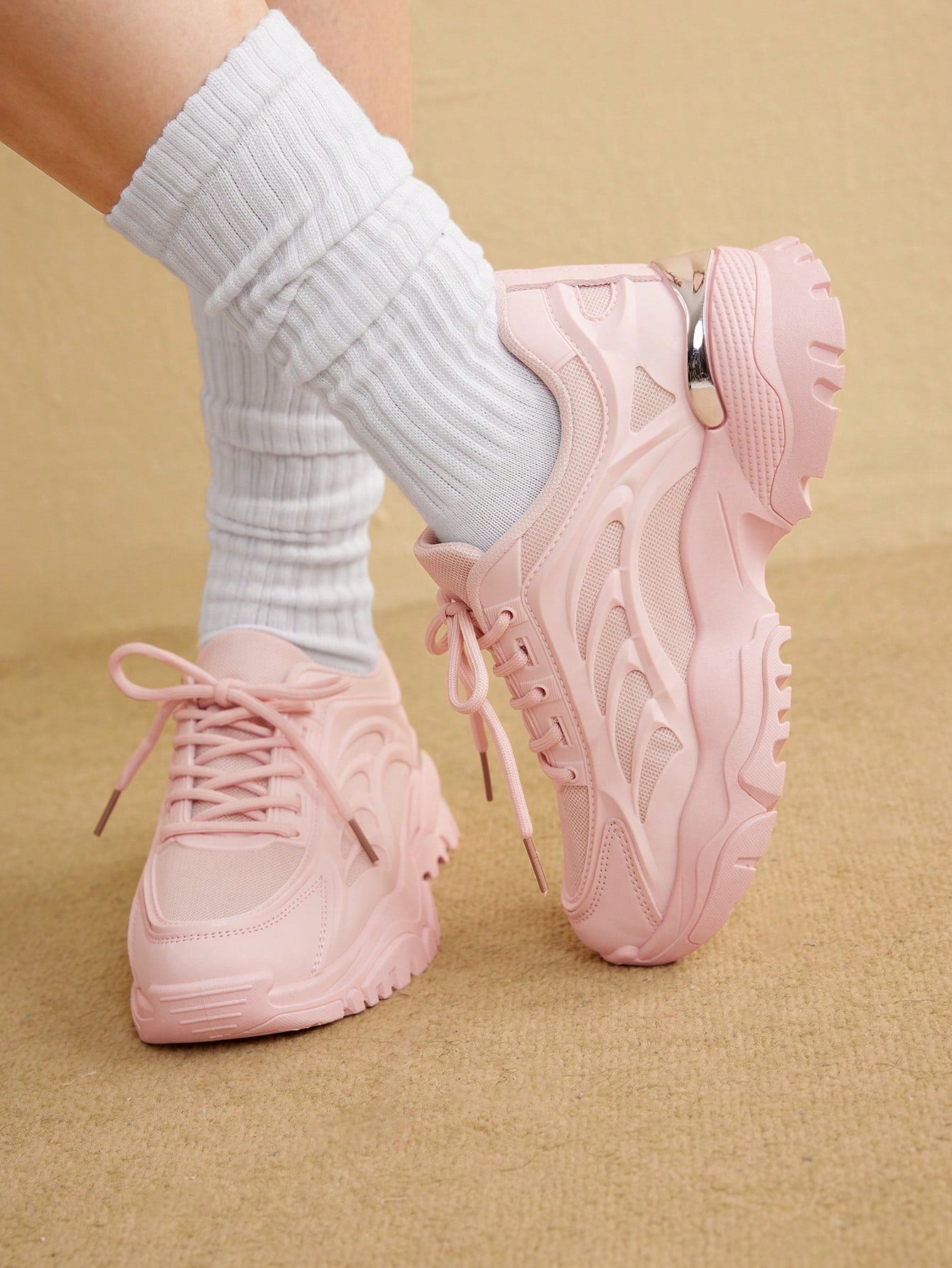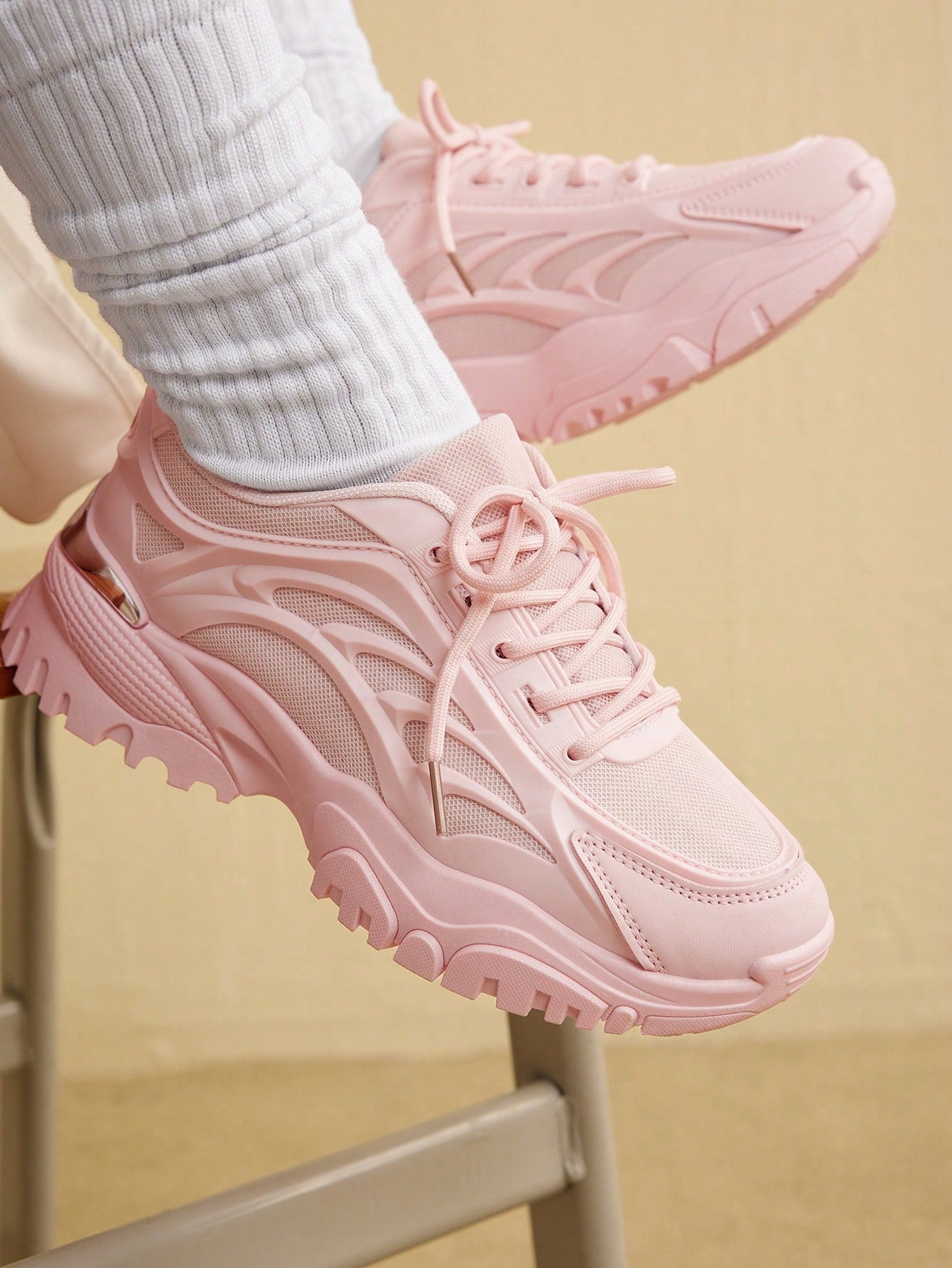 أحذية رياضية كاجوال للنساء ذات كعب سميك بتصميم خفيف الوزن باللون الوردي