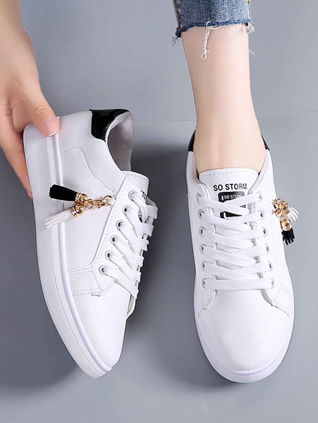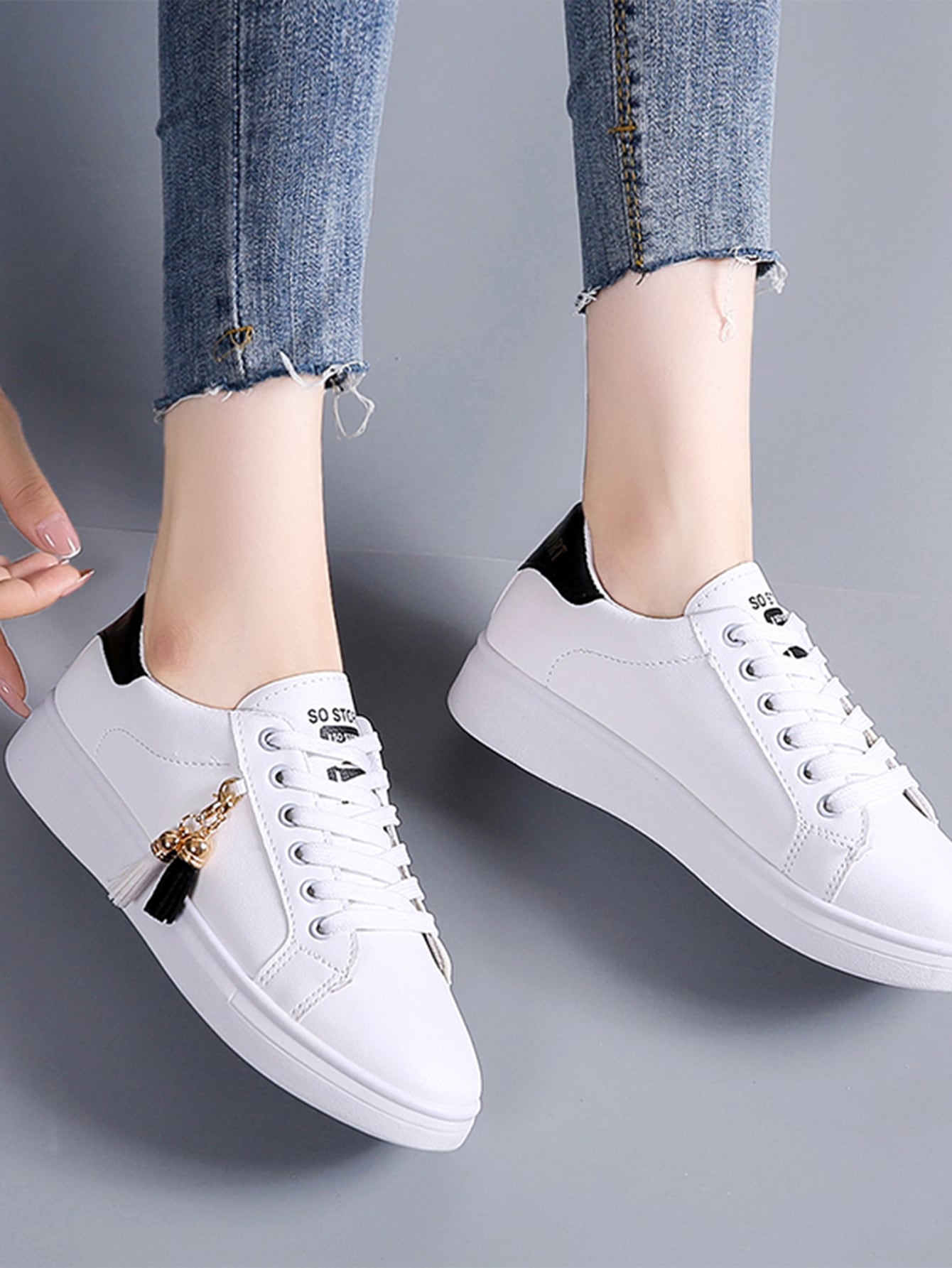 أحذية سكيت بتفاصيل عبارة رباط امامي , أسود & أبيض الموضة رباط بتفاصيل عبارة للنساء كاجوال حذاء رياضي