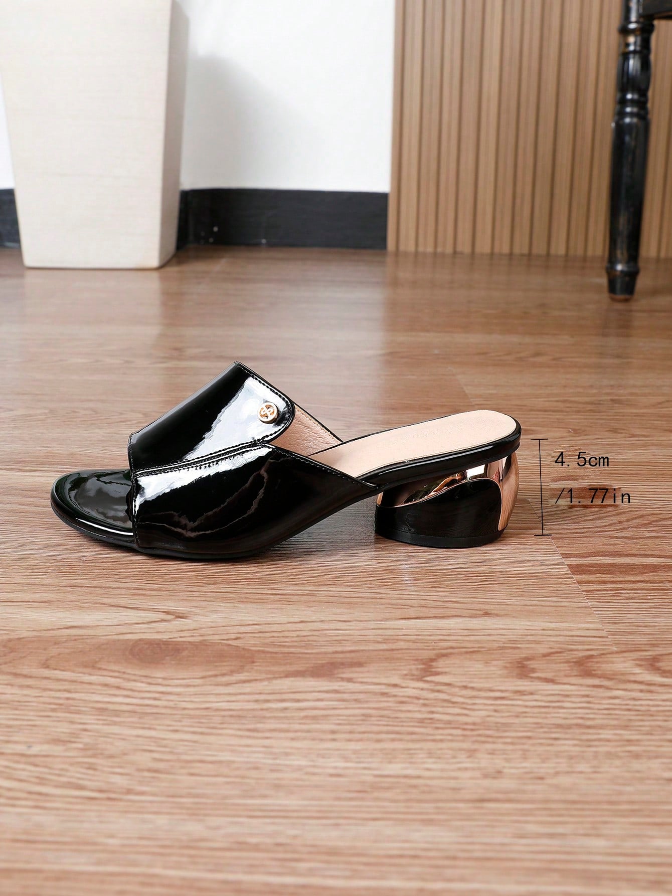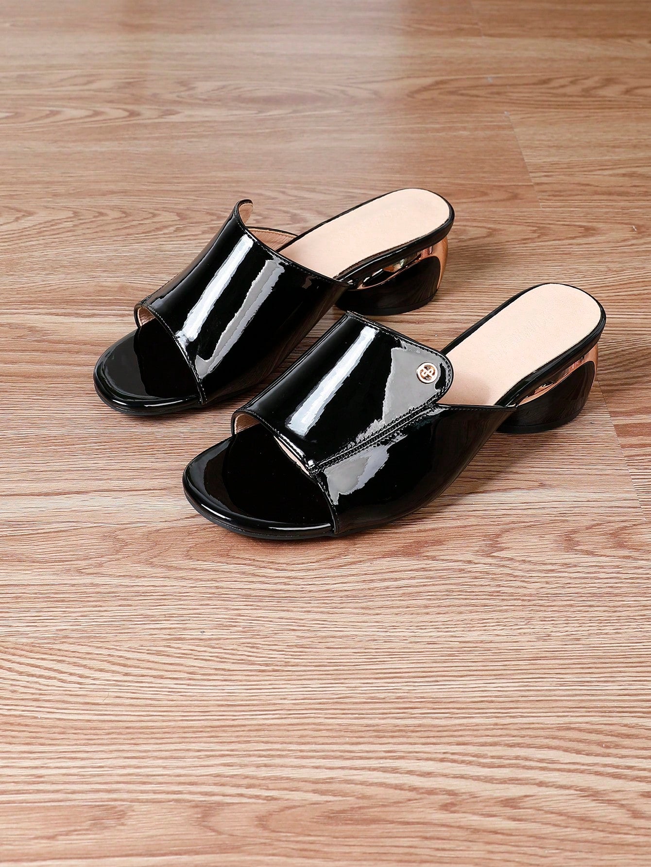 أحذية صنادل ذات كعب عالي أسود أنيقة للصيف للنساء ، أحذية ذات كعب سميك